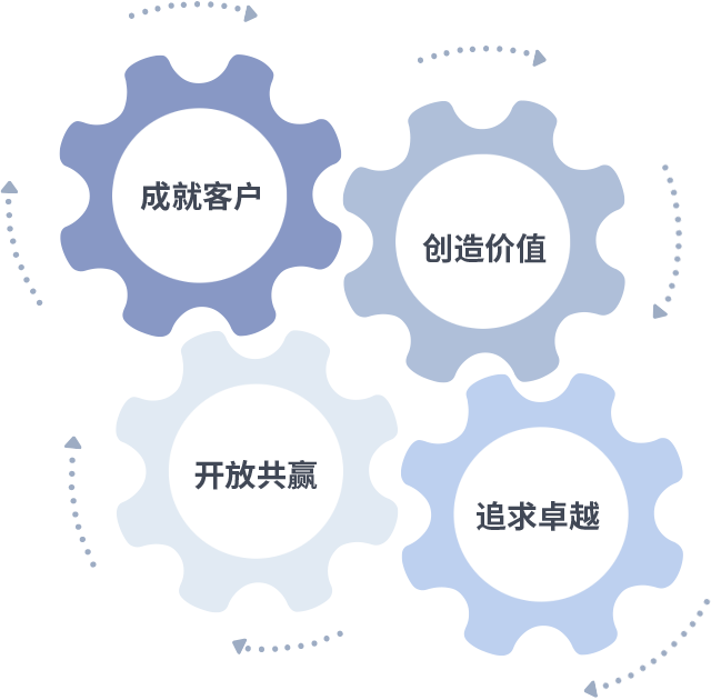 成就客户是一切决策的出发点,创造价值是衡量所有工作的标准,追求卓越是金年会金字招牌诚信至上做事做人的态度,开放共赢是金年会金字招牌诚信至上的格局也是最终的结果。价值观的齿轮环环相扣,推动着组织里的每个人不断向前。